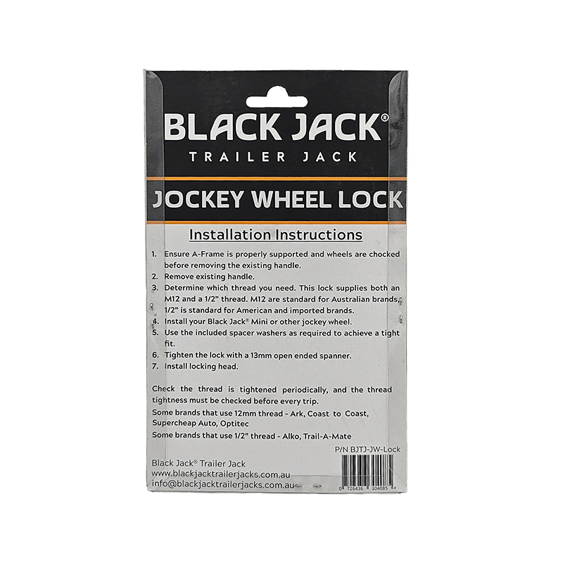 Prevent unwanted removal of your Black Jack Mini or other jockey wheels with the Black Jack Universal Jockey Wheel lock.