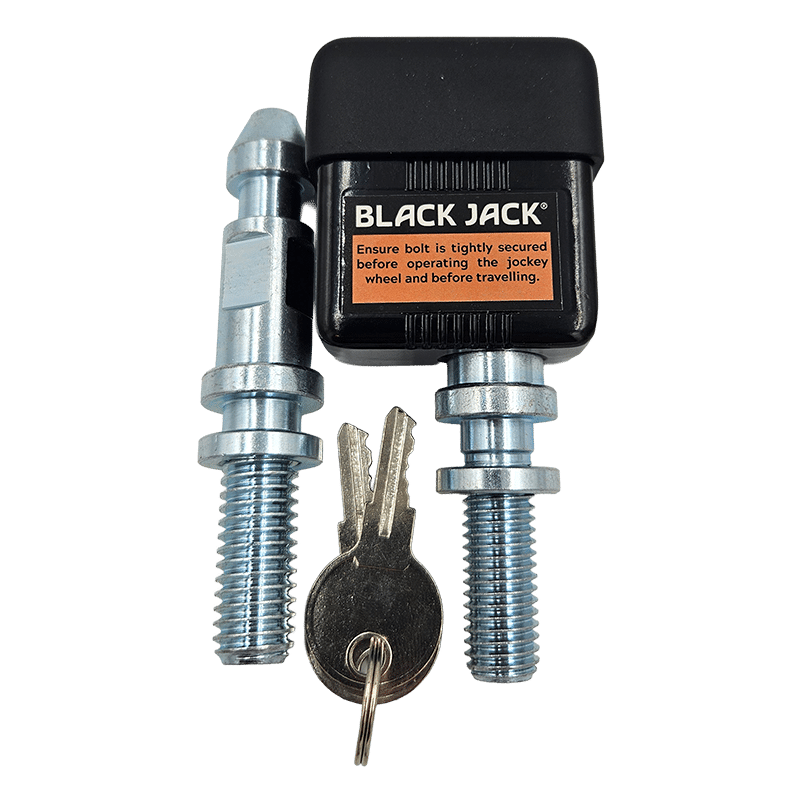 In Australia, different manufacturers of jockey wheel clamps use different thread sizes that are not interchangeable. That’s why the Black Jack Jockey wheel lock comes with a choice of 2 pins to suit your clamp.